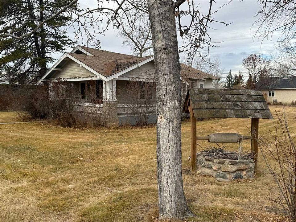 Discover the potential of this character-filled property located on a large corner lot in the Town of Vulcan. Estimated to have been built around 1946, this home offers vintage charm and space to make it your own. The main floor features a front living room/library, formal dining room, large kitchen, two spacious bedrooms, and a 4-piece bathroom. There’s also attic access for additional storage possibilities. The partial basement includes laundry, utility, and storage areas. Enjoy the outdoors from the covered L-shaped verandah — perfect for relaxing in the summer breeze or firing up the BBQ year-round. The mature lot provides plenty of room to garden or consider future possibilities, such as adding a workshop or garage. Please note: the property is being sold in as is, where is condition. The home requires substantial repairs, including damage from a burst pipe that occurred last winter. Furnace was replaced in 2016, and the home has 100 AMP electrical service. If you’re looking for a project with potential in a great small-town location, this property could be the one for you.