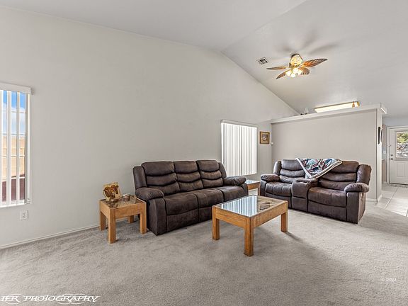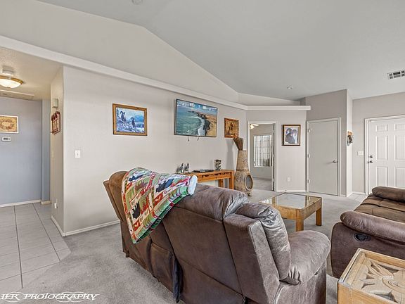 Adorable home in a great location. This 2 bedroom, 2 bath home is located in Rivers Bend. Low HOAs, community pool and park right down the street. The primary bedroom is large with dual vanity sinks in the en suite. The home sits next to the subdivisions gated RV/boat parking area which means no neighbors to one side and no neighbors behind you! East facing backyard with mountain views. Covered patio, fully fenced, storage shed, 2 car garage and includes all appliances.
