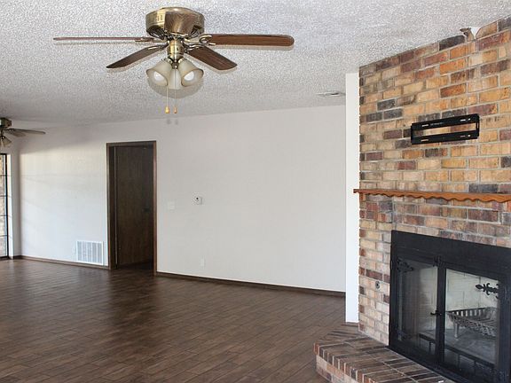 Enjoy this home located in a cul-de-sac in the Wheatridge Addition! Move quickly on this one and you could possibly spend the remaining summer nights under the covered patio and enjoy a fresh iced tea in the shade! Beyond the fence line in the back, there is additional property, and the storage shed is located there. This shed is great to keep yard tools and lawn mowers, so there is no need to use up your garage space. The home features a 2-car attached garage with a concrete drive and an additional concrete parking space in the front of the home. This 3-bedroom 1.75-bathroom home has ceramic wood look tile throughout and is easy to maintain and is also great for those who suffer from allergies and can't live with carpet! In the winter you can sit and relax while watching the fireplace in the living room!