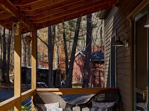 Your private retreat awaits with both a covered front porch and newly constructed deck—the perfect spots for morning coffee, evening gatherings, or quiet moments surrounded by nature. Nestled in a tranquil wooded cul-de-sac, this home offers serenity while remaining just over a mile from the Trailways bus stop and minutes from the amenities of New Paltz and Kingston.