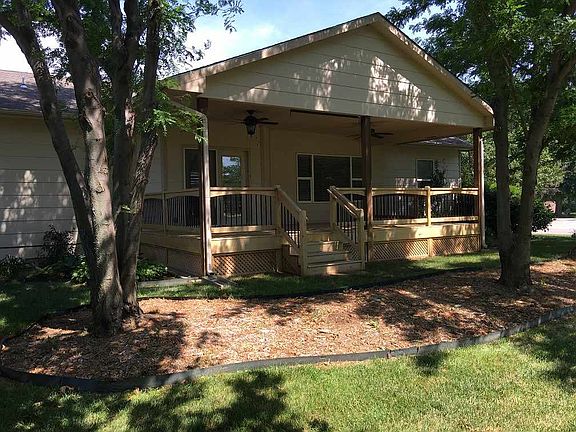 Well maintained home with lots of square footage - freshly painted main level has 3 bedrooms and 2 baths - large master and master closet - linen in master bath - 9' ceilings in living room, kitchen, dining room, master and laundry - pull out shelves in kitchen lower cabinets - built-in pantry/storage cabinet in laundry off kitchen - 2nd bedroom has window seat with storage and separate built-in cabinet in addition to closet - high low shelving in closets with quality facing - basement is finished with family room, a huge bedroom and 3rd bath - still plenty of storage with shelving in the unfinished areas of basement - beautiful landscaping and shaded back yard with large covered deck - well for sprinkler system - across the street from area pond - backs up to very nice house with wooded lot - low specials pay out in 2022 -great small town living with excellent schools yet close to the ever growing restaurants/shopping etc of NW Wichita