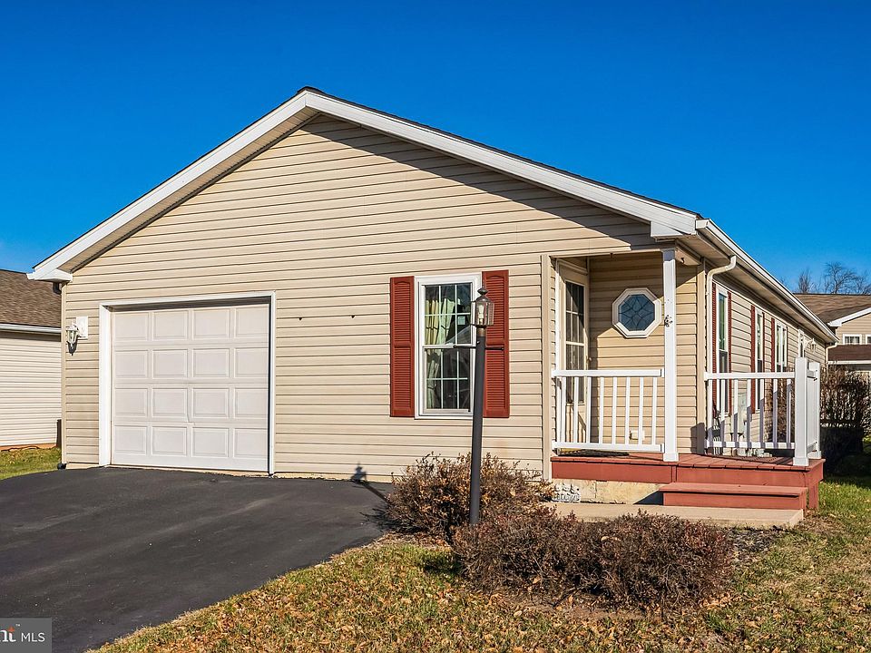 Welcome to Willow Manor model being offered by original owners. This home presents a larger footprint and some extra storage not found in most models here in Willow Run. The vinyl floor foyer with coat closet begins the tour leading directly into the living room and straight into dining room; making family gatherings with longer table easily managed. The kitchen off to the left has many attributes. The breakfast area has additional cabinetry at that end, double windows and room to add furniture to suit any number of needs- desk, bookshelves, baker’s rack as shown. Center island cabinets and pantry next to fridge have roll outs adding to the overall convenience. Newer appliances, fridge with ice maker, gas 5 burner stove make cooking less a chore. The hall way continues the tour with hot water heater closet all to itself on left and hall bath on the right. Laundry is next with door to backyard and shed. Cabinets keep things tidy, rod for drying special items and utility sink a real bonus. Heater, circuit breaker box and whole house water shut off are all here together. Second bedroom has roomy closet along one wall opposite a large window. Primary bedroom features a walk in closet. This room can be set up two different ways- with bed between windows and night stands on either side or keep the same arrangement- plenty of room to add make up station, as shown, and TV stand. Owner suite bath has had shower redone with low threshold, bench seating, safety bars, overhead and hand held wand- all the amenities…! Single sink vanity has copious storage with 2 cabinets and 2 sets of drawers and can be easily changed to accommodate two sinks. Behind the door is a large linen closet and opposite the commode is another storage cabinet. Please come visit to see for yourself all this lovely home has to offer.