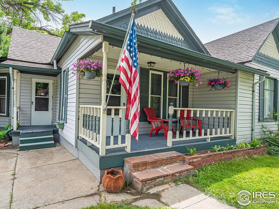 Motivated seller! The location can't be beat! Want to live in downtown Loveland? Check out this great West Side bungalow across the street from West Side Park! Watch the world go by from the inviting front porch. Hardwood floors, some newer windows, newer H2O heater, wide baseboards, cute dining room, 4 bedrooms, vinyl siding, & more! The outdoor living space is amazing! Enjoy summer nights on the large back deck overlooking the fenced backyard & West Side Park. 1 car detached garage w/ electricity & alley access. Just minutes away from all the fun that downtown Loveland has to offer. Close access to River's Edge Natural Area, Fairgrounds Park, recreation trails, & Lake Loveland isn't far away! No HOA, no Metro District! Make this adorable home yours TODAY!