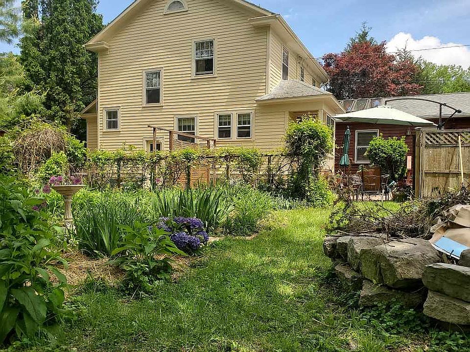 Colonial home across the street from MIU campus. Double lot with trees, privacy fence, jacuzzi area, fire pit, and garden shed converted from a one car garage. Carport in front. On cul-de-sac with newly paved street. Armory is quiet and uses other entrance, so no extra traffic. Second floor has two bedrooms and a bathroom, plus two bonus rooms. Large bedroom and bathroom on main floor with clawfoot tub. Several heating options keep the utilities low: brand new boiler, in-floor heating, hotwater heating, and fireplace. Also set up for wood stove. Dry basement with work shop area. Laundry on main floor. Customized for health. Fully insulated attic includes 3 layers of radiation protection from cell phone towers. Option to switch off electricity in bedrooms. Whole house water filtration and RO remineralization system. Opted out of smart meter. New (one year old) frig, dish washer, stove. Great room with vaulted ceilings and 8 skylights. Two minute walk to Fairfield nature trail.