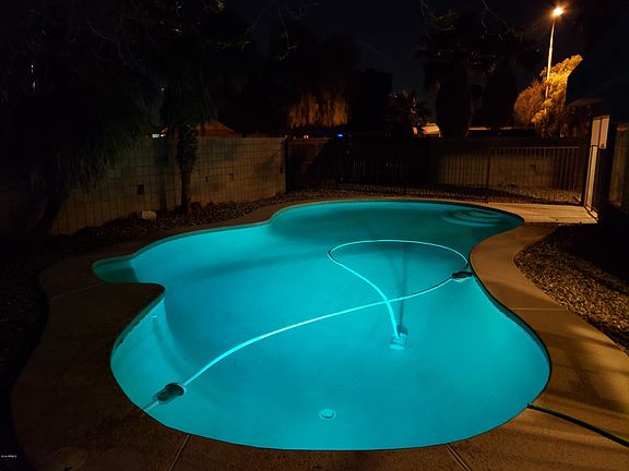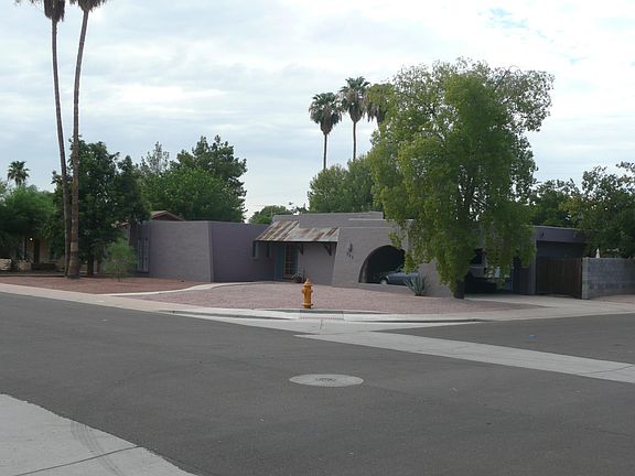 Unique contemporary Sante Fe style home in a great location. Large 4 bedroom, 2 bath home on large corner lot with plenty of parking behind locked gates in the quiet desirable neighborhood of Thunderbird Estates. Near Knox Gifted Academy, downtown Chandler entertainment district and loops 101 and 202. This home features a large laundry/mud room that opens up to the kitchen, garage, indoor and outdoor workshops, back covered patio, and large Pebbletec 650 sq ft diving pool. Amazing remodel with fantastic open flowing floor plan with expansive views to pool from kitchen, living, dining, and with a Completely enclosed and finished Arizona room. New finishes, updated systems, new windows and doors replaced with dual pane for energy efficiency. Gorgeous kitchen with shaker cabinets, glass hardware, new black dual sink & faucet, stainless steel/black appliances and new soapstone counter-tops and glass subway tile back-splash. Beautiful color-stained concrete floors throughout. Updated two tone interior and exterior paint. New fixtures, 2” wood blinds throughout and new variable speed pool pump. The roof was replaced along with HVAC which has been recently serviced for optimum performance. 6 ft high masonry rear yard wall With built in lighting the wall provides privacy and security for entertaining and relaxing. Two large corner sliding RV gates are provided for your recreational toys, work trailer or truck. A second large sliding RV gate in the alley provides additional parking space for toys. Well-built masonry home for thermal mass, energy efficiency, and ready for your personal touches. Ceiling fans with remotes in every rooms and remodeled bathrooms. Mature trees and xeriscape landscaping for low water usage and low maintenance. Perfect area for your 4-legged family members to have a contained run. All rooms cable ready and security system installed with protection for all doors and windows as well as cameras on every exterior wall of the home. North-South exposure is ideal for future solar installation and easy access for EV charging station in garage. New insulated garage door added to the oversized two car garage. Best of all there are no HOA or fees! Make an appointment today.