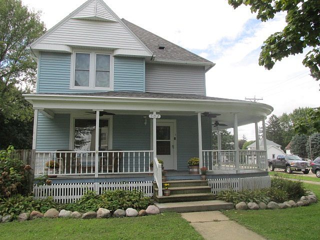 Immaculate & updated home blends old world charm with modern updates. Beautiful natural woodwork throughout. Open stairway w/stained glass window. Updated spacious kitchen features newer stainless appliances, maple cabinetry & farm sink. Formal dining room with laminate flooring. New carpet in living room/family room - 10/2019. Newer, quality replacement windows throughout. New upper bathroom recently installed. Master bedroom includes spacious bath. Updates include: water heater - 2016, furnace - 2016, roof- 2011. 2-1/2 stall heated garage plus extra 2 stall garage- new garage doors on both all situated on beautiful fenced yard. Subject to sellers finding suitable housing.