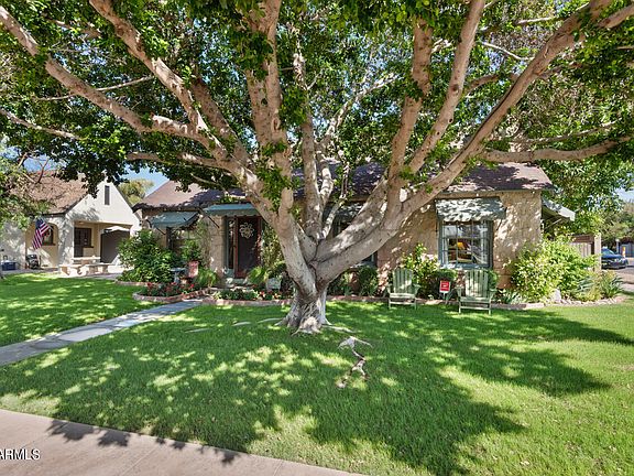 It's not often that these one-of-a-kind Tufa stone charming cottages comes on the market in the Historic Districts. Now's your chance to own this rare unique 3 bedroom/2 bath home with owners of 25 years who have maintain historic charm while incorporating modern convenances. Refinished hardwood floors & new paint throughout. Formal living & dining rooms as well as sitting room w/fireplace off main bedroom. Fourth room can serve as multiple purposes such as office or additional living space. Updated kitchen w/island, breakfast bar & wine cooler. Primary bedroom w/remodeled ensuite bathroom & walk-in closet. Complete remodeled large hall bathroom. Tranquil back yard w/mature trees, 2 fountains for relaxation & covered patio for entertainment. Rare for Willo a 2-car garage.