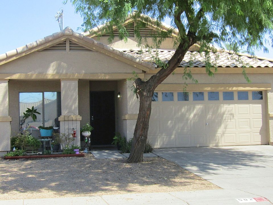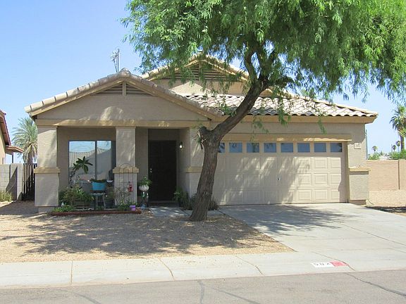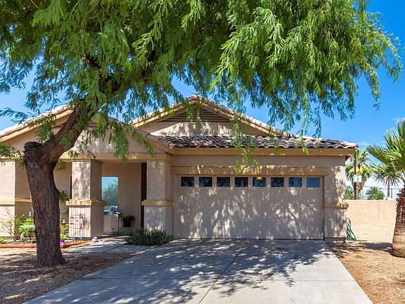 The perfect 4 bedroom, 2 bathroom home on a oversized lot. Nice floor plan with separate living room and open floor plan in kitchen and family room. Eat in kitchen breakfast bar at island with granite countertops. Wood colored blinds, ceiling fans, 2 car garage and covered patio for your backyard relaxation while enjoying a cold beverage. Backyard has sprinklers and lawn curbing ready for your own style of grass or turf, plus a shed. Property is located close to spring training facilities and shopping. Don't hesitate on this home it won't last long!!