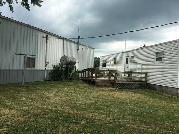 CORNER LOT ON WEST SIDE OF TOWN. SINGLE FAMILY OWNER THAT HAD A HOME BASED BUSINESS. HOME HAS THERMO WINDOWS, NEWER ROOF, APPLIANCES INCLUDED. LARGE 40 X 60 MACHINE SHED WITH THICK CONCRETE FLOORS, INSULATED, WITH WATER SOURCE AND HEAT, FANS. 12'9" tall by 14' wide OVERHEAD DOOR, SMALL OFFICE 10 X 8. Home is a double wide on a foundation.
