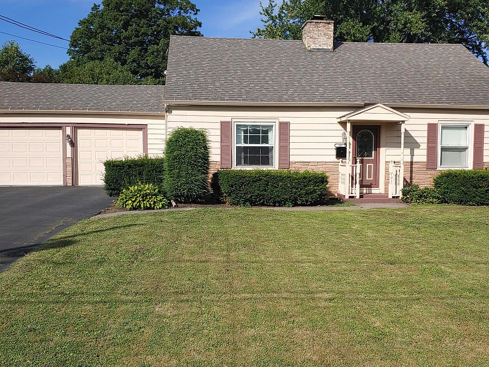 Expanded cape. HUGE family room/sunroom w/ gas stove off. Kitchen is updated and beautiful. Large living room and formal dining room. 4 bedrooms and 2 baths. Central Air and a 2-stall garage. Nice deck off of the sunroom. This home is warm and inviting with a very private backyard. Don't miss this GREAT home.