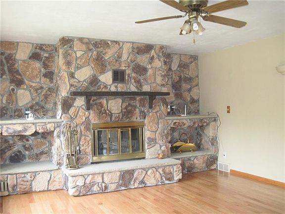 Home in country setting on 1.2 acres, convenient access to highways; completely redone; 3 bedrooms, 2 full baths, living room has wall-to-wall stone, wood-burning fireplace as well as bow window; hardwood floors are newly installed; updated kitchen; full attic; two large porches (front and side); finished basement with built-in sound system, laundry area, and workshop; two-car, detached garage; above ground pool; storage shed.