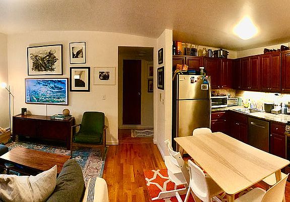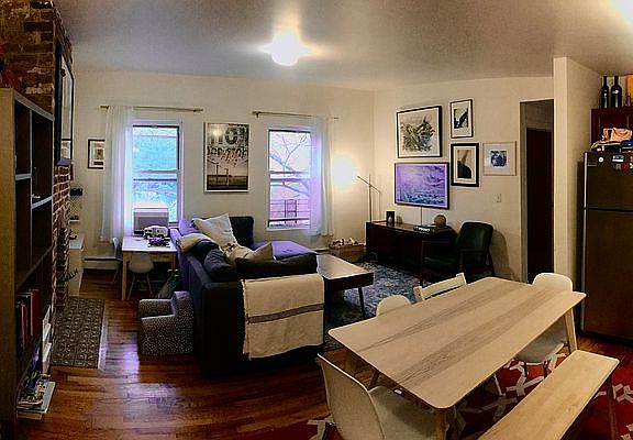 Last remaining wood house in Boerum Hill: huge master bedroom (15x15) and 2 dens (7x9 each), many closets, huge laundry room, cook's kitchen. spacious bath and sky-lights. On the 3rd floor in a walk-up. Pet friendly with no additional security. Perfect for small families or professional couples needing 2 home offices. Exceptionally well maintained and immaculately clean. Easy on street parking. Tenants pay all utilities. the broker's fee is one month's rent. Will arrange a sequential open house this Sunday, May 7th between 11am and 1pm. The time slots will be in 15 minutes slots; so call to confirm one of the time slots please. No floors plans or videos available. Smoking allowed:No
