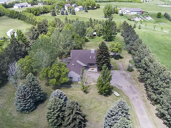 Located just south of the University of Mary, this custom-built multi-level home is exploding with character! You will immediately notice the brick exterior and inviting covered entry and large concrete patio. From the moment you enter the grand foyer you will be impressed with the great attention to detail this home offers. The entire home is flooded with natural light with its abundance of large windows, bay windows, skylights, and multiple patio doors providing you a picturesque view from every room in the house! The large sunken living room has a bay window and 2 skylights. A generous sized dining room has large patio door graced with a unique huge trapezoid window. The charming country kitchen has an abundance of oak cabinetry and counter space, a pantry, and an adorable breakfast nook with a bay window that shows off the breathtaking landscape. There is also a convenient half bath on the main floor located just off the garage entrance. The grandiose wide-open staircase will lead you to the sprawling primary suite which has an attached bath, walk in closet, and a patio door leading out to your private escape for star gazing or your morning coffee. The 2nd bedroom is also very large with access to a great size full bathroom with double sinks. The daylight lower level is cheery and inviting with the wide-open staircase leading you to a nice office area and great size family room with another patio door. There is a laundry room on this level and it is also framed for a 3rd bedroom with daylight window, and a 4th bath is stubbed in. There is access to a huge amount of crawl space for all your storage needs. The oversized attached triple garage is almost 900 sq ft. There is also an oversized 12x20 shed and another adorable smaller custom built shed that could make a great playhouse. This is a one owner home with good bones and many great updates such as flooring, newer furnace and hot water heater but there are still projects for the new owner. Big bonus is the STEEL siding and BRICK for a low Maintenace exterior! Great opportunity to put some work in and gain some instant equity, the super private setting is definitely worth it!! This is an estate sale and the home will be sold ''as is/where is'' If you are looking for a private rural property but don't want to wait 20 years for mature trees, schedule a showing today!