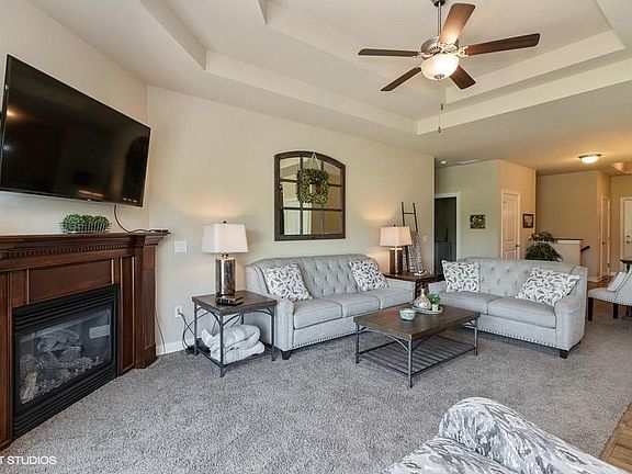 Come and see this beautifully appointed ranch home with 3 bdrms on the main floor and a 4th in the lower level. A few upgrades include: double tray ceilings in the living room and master bdrm, expanded deck off the kitchen with a motorized awning and side screen for comfort. Take a few steps down to a great patio to watch the golfers on the 4th green. Beautiful landscaping and a fully automated irrigation system. The lower level is impressive with nearly 9' ceilings, egress windows, a family entertainment area, a wet bar with a small refrigerator, and an eating area. In the bathroom you'll find an oversized tiled shower, and an upgraded vanity. The fourth bedroom has an attached walk in closet that provides excellent storage. You'll find ample storage in the utility room and the already installed radon mitigation system. The 3rd garage stall has a 9' opening for those special vehicles that need a little extra height. This ranch has to be seen to be appreciated!