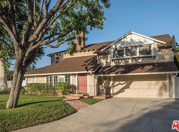 Classic 2-story Mellenthin Trad'l in prestigious Magnolia Estates area of Val Vlg! Beautifully staged and oozing with charm and curb appeal on a wide corner lot, featuring ext. brickwork, P&G hardwood floors, plate rails, Diato staircase & split level upstairs floorplan! Formal Liv rm w/vaulted wood beam ceiling, impressive brick FP, bay window! Large kitchen w/BK is freshly painted and has Sub-0 fridge, KitchenAid cooking, extra bar sink (potential 4 kosher lay-out). Billiard-size Fam Rm w/brick FP & powder ba! Master en suite w/largest walk-in closet ever - could be a future bdrm! Supersized backyard w/swimmer's pool, brick patio + fabulous grass area for summer fun in the sun! 2-zone dual AC/heat! Bring your decorating and updating ideas to a classic trad'l w/great bones on a large oversized lot in a premier neighborhood! Close to Houses of Worship, canyons, freeways.