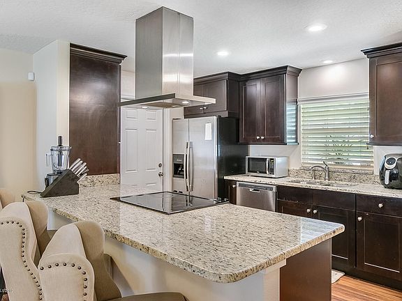 - Living/Dining Combo, Open Floor Plan, Window Treatments, Breakfast Bar, Ceiling Fan(s), Closet - Walk-Ins, Built-in-Features, Cook Island