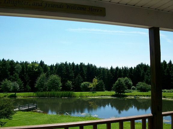Country living at its best...Private Setting. This 4 bdrm ranch sits on a full Basement. The basement is a two plus; but has been used more for family entertainment, there is a separate heating unit, stove, refrigerator, and bathroom. Upstairs is a Great room; Kitchen, dining and Living room are open and make for great entertainment which can flow right out to the Covered Porch with looks over the pond. Kitchen has Commercial stove. Two bedrooms have a bath between them, and then there are two more bedrooms and a bath with a shower. There is a 24 x 50 metal out building with dirt floor; another one car garage for storage and an old Cabin that would be a great guest house/ or studio. This parcel is a part of a larger parcel, it will consist of 46 acres to be surveyed