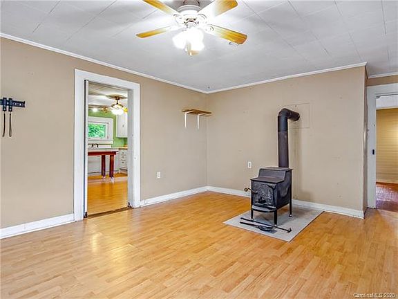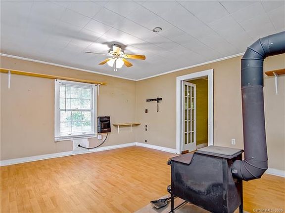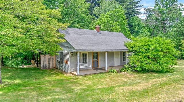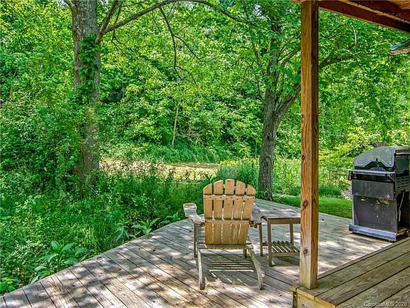 Watch the sunrise over the mountains on the front porch swing, grill on the back deck listening to the creek flowing, and the birds singing. Move in ready, 1 bedroom with a bonus room, kitchen island and dining table convey, large mostly level lot, carport with storage/workshop area. Bathroom and bonus room are under 7 feet. Tax records state 1.62 acres, deed states 1.82 acres. Sold "As Is", seller makes no repairs. 15 minutes to I-40, 30 minutes to downtown Asheville.