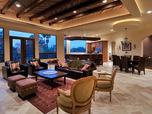 For more information on this property, contact the Listing Agent, Robin Sue Kaiserman at (520) 918-5411 or robinsue@robinsue.com. ELEGANCE & CHARM CREATED BY NY INTERIOR DESIGNER LINDA ZARIFI,SPANISH COLONIAL AMBIANCE IN PRESTIGIOUS GATED SKYLINE COUNTRY CLUB,CUSTOM BUILT IN 2009,SPACIOUS LIVING AREA W/OVER 2962 SQ FT ENCOMPASSES A DRAMATIC 20 FT HIGH ENTRY TOWER W/SAGUARO RIBBED CEILING ACCENTED W/FLAMED COPPER RODS,CLERESTORY WINDOWS,CUSTOM WROUGHT IRON DR IMPORTED FROM MEXICO W/STAINED GLASS INSERTS,EXQUISITE GREATROOM W/STACKED STONE FIREPLACE,RECLAIMED MESQUITE MANTLE,WALLS OF WINDOWS,FORMAL DINING AREA,GOURMET KITCHEN W/BEAUTIFUL ALDER CABINETS,GRANITE COUNTERTOPS,BAR W/CUSTOM WROUGHT IRON CHANDELIER REMINISCENT OF THE AZ STARRY NIGHT SKY,HERRINGBONE PATTERN TRAVERTINE FLRS,FRENCH DRS,COZY DEN/LIBRARY,3 BDRS,3 BATHS,MASTER W/LUX BATH,LRG WALK-IN CLOSET,ENTRY TO REAR PATIO,MAJESTIC CITY,GOLF COURSE & MTN VIEWS