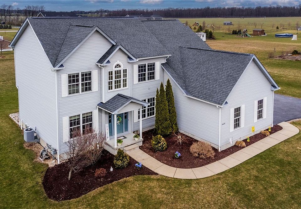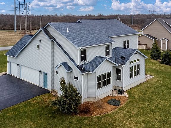 Enjoy the green space at this meticulous, 2,933 SQFT Havenwood Estates CMK built home built on a 1 acre lot located in Akron in the top rated Clarence School District! Plenty of natural light throughout the First floor open floor plan, large kitchen with island breakfast bar with plenty of cabinet space, morning room, formal dining room, family room with gas fireplace and custom built in cabinets. Additional rooms include office / den with custom built in cabinets and Glass French doors, half bath and hallway mud room leading to the extra-large 3 car garage. Spacious second floor features large master bedroom with walk in closet and full bath with dual sinks and tiled shower. Enjoy the convenience of the second floor laundry room and three additional generous sized bedrooms and full bath with dual sinks. Plenty of storage in the dry Basement with 8’ fully insulated poured walls with glass block windows and excellent energy efficient mechanics. OPEN HOUSE Saturday April 22nd 11am-1pm & Sunday April 23rd 1-3pm.