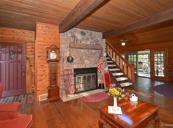 Wooded Wonderland Salt Box Home on 5 acres! Your Country Hide-away with a 30 X 12 Barn (used as a work shop), garden sheds, kids play house, and a Tree House.Very Well kept gardens and paths on this property. Great room with Field-stone Fire place and skylights. Loft is used as a BR and the house even has a full walk out Basement with wood burner for those winter nights. You will love the screened in Porch overlooking the acres sprinkled with mature oaks.