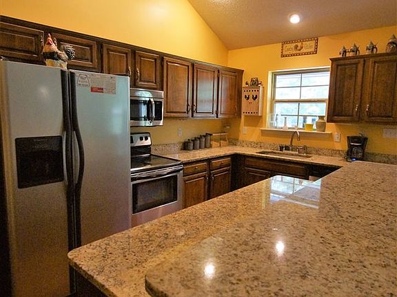 Hidden "Gem" in the woods!! See what this beautiful 10-acre wooded property has to offer. Split 3BR/2BA open floor plan home w/ hardwood & tile floors throughout. Kitchen has custom cabinetry, granite, SS appliances, lighted pot rack over island, recessed lights, pantry, breakfast area. Floor to ceiling stoned fireplace in family room. Master suite has walk in closet, large custom shower and vanity. Heated/cooled with full electric 30'x40' workshop. Above ground pool & covered patio out back.