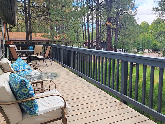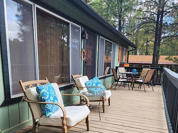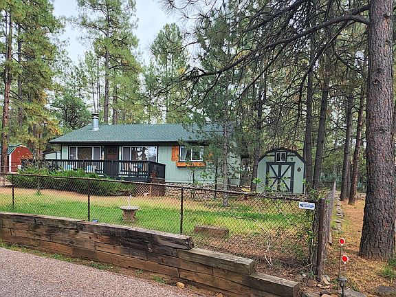 Check out this cute 2bd,1ba cabin with lots of RV parking within a completely fenced yard. Fully covered back patio. Front porch deck has great views and tall pines to enjoy the fresh mountain air. This home is an active vacation rental, or it could be your forever home! Comes fully furnished and ready to move in. Seller is a Licensed Broker in Arizona.