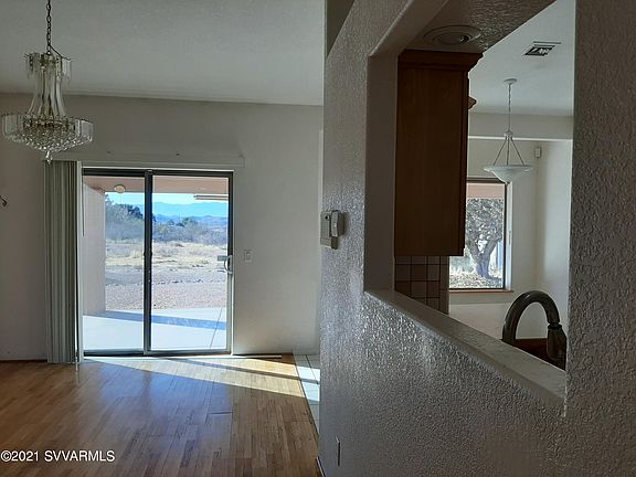 This hill-top home offers views galore! And is in the perfect location: 20 minutes to Cottonwood; 25 minutes to the red rocks of Sedona; 50 minutes to Flagstaff. Watch the sunrise from the front porch; finish the day relaxing on the large back porch watching the sunset over Mingus Mountain & the twinkling lights of Jerome on the hillside. Enjoy the quail, cardinals & bunnies. The open floor plan offers plenty of room for gatherings & the intimacy of a flame-view pellet stove for coziness. The master bathroom has a deep jetted tub & separate shower. The breakfast nook is also a great reading corner. The laundry is plumbed for either gas or electric dryer. The 2020 heat-pump AC unit keeps the home cool. The double-gated fenced yard means plenty of room for toys & extra large vehicle