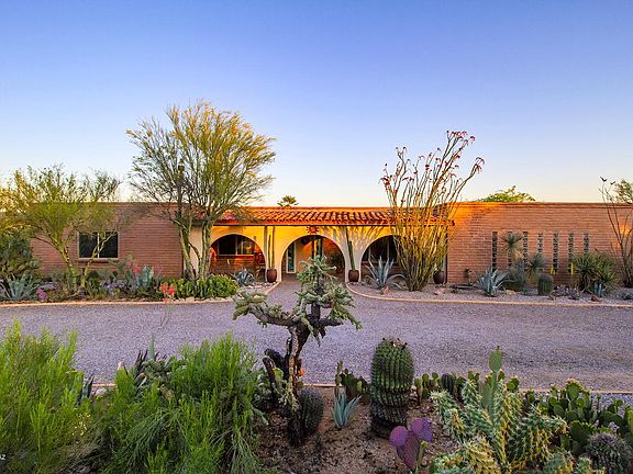 Charming Burnt Adobe with Pool on 1 Acre of Amazing Flora and Fauna has Beautiful Catalina Mountain Views. Located in the desirable Catalina Fooothills Estates, this home has lots of light and modern touches that blend perfectly with the Tucson Style and Architecture. You'll enjoy the 4 bedrooms, 3 baths, formal dining, breakfast room, living room and family room with fireplace. 10'' thick walls, wood beam ceilings, skylights, art niches, upgraded lighting, lots of tile, alder wood doors, 2 car garage and a large stone fireplace. You will also love the little gardens with seating areas, covered patios for guests and private one for the master bedroom, sparkling pebble tec pool, firepit area and lush Sonoran Desert vegetation. This home feels comfortable and peaceful.