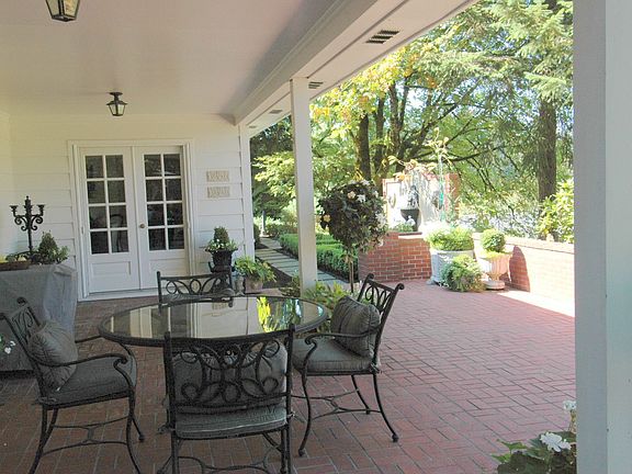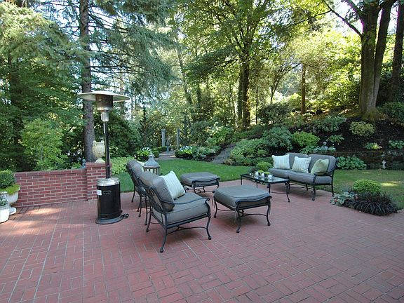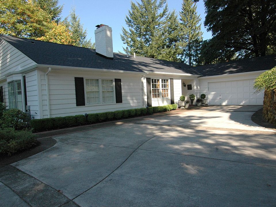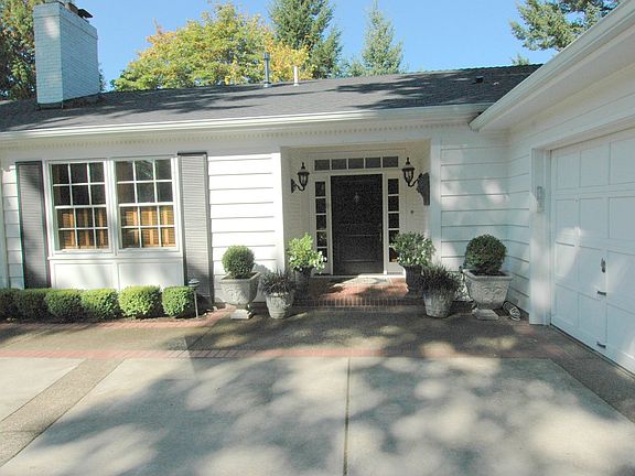 Bauman built custom design situated above street level in quiet, park-like setting on corner lot. Remodeled kit w/ cherry cabs and hardwoods, slab granite, stainless appliances. Beautifully updated w/ fine finishes. One lvl living includes master suite, garage and utility room all on same floor. Spacious rooms open to lovely gardens, covered brick patio, elegant water feature, lawn. Close to downtown, schools, OHSU, and businesses. A gem!