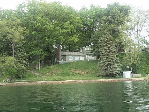 Charming Lakefront home on all sports Sand Lake with a panoramic view of one of Irish Hills most popular lakes.80 ft lake frontage, sea wall and beautiful sandy swim area to enjoy from enclosed all season porch. Cozy fireplace in family room, large living room, dining area all with lake view, 2 car garage ,balcony off upper level with exit from bedrooms.