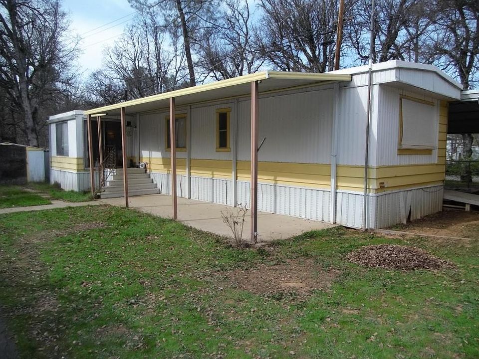 Single wide manufactured home on .65 acres with an expanded living room and a 2 car detached garage. Home has a 433A on file with the city of Redding and is considered to be on a permanent foundation for financing either FHA or conventional. If interested please text the listing agent.
