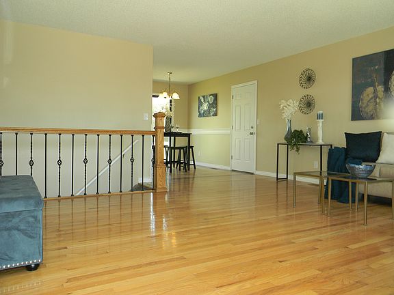 Bright and open rancher with new paint and carpet. Wood floors in kitchen/living room. Three beds and full bath on main floor. Wrought iron and wood railing separates the living room from the basement stairwell. Huge family room, 3/4 bath, and additional bedroom in basement. Fenced yard with large 8x12 storage shed and concrete patio.