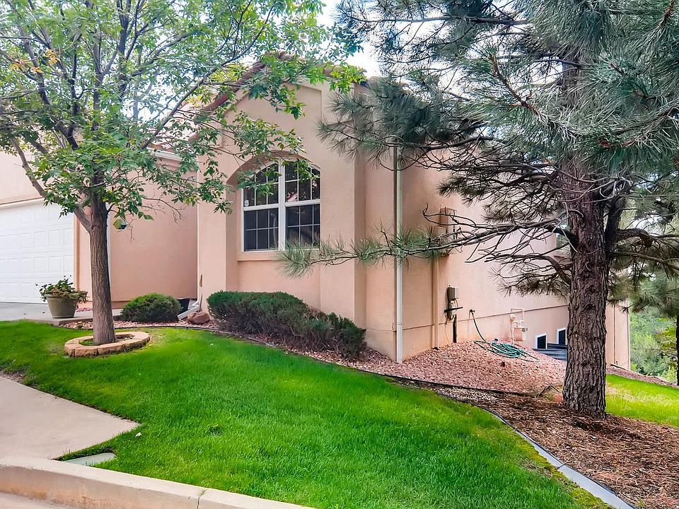 Great townhome that is truly turnkey. Located minutes from downtown Colorado Springs, Garden of the Gods, The Broadmoor, and Pikes Peak, this beautiful low-maintenance home has an open concept with lots of natural sunlight. The main floor kitchen was remodeled including opening the space to the living and dining room. Granite counters, gas appliances and a wine fridge. Hand scraped wood floors throughout much of the living area and new carpet in master and office. Large main floor master with gas fireplace and equally large bathroom with double vanity and two walk-in closets. The basement is an entirely separate living area that is well-lit with double sliders leading to the sizeable wood deck overlooking Colorado Springs. 2 roomy bedrooms with a 3/4 bath. Kitchenette with microwave, compact frig and sink. Outside is mostly maintenance free with the HOA taking care of exterior maintenance roof and lawn. Less work allows you to spend time enjoying Colorado!