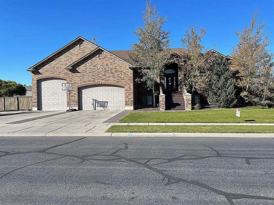 Beautiful, large family home on just under an acre. Horse property if desired. Fully landscaped and fenced. Massive 5 car garage as well as large rv pad with hookups. Six bedroom home with travertine tile and granite throughout. Large covered deck as well as a covered walkout basement patio with a hot tub. Laundry rooms on both levels. Wet bar, mini fridge and microwave in the basement. Spacious master with a jetted tub and separate Italian tiled shower.