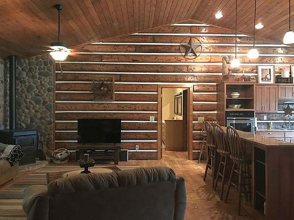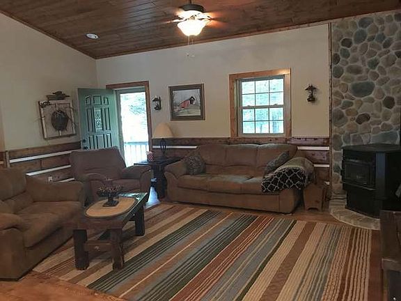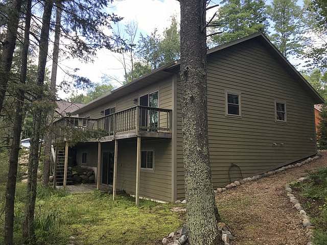 Come inside this newer 1 owner home and truly feel like you're in the northwoods! At the end of the road you'll find this 5 bedroom 4 baths custom built home on full-rec 320 acre Silver Lake! With over 600' of shoreline you'll have a quiet bay filled with wildlife and Loons singing! Private sandy shores with large deck on the water and fun times at the tiki-bar! Open concept loving room/kitchen with hand-hewn log beams for that WOW factor. Eat-in kitchen with 2 tier island, plant shelves and bar area. Master suite with patio doors to the deck. Finished lower level is walk-out, 2 bedrooms each have having private baths, 1 having jetted tub! Off attached finished garage is a bar room for indoor fun!