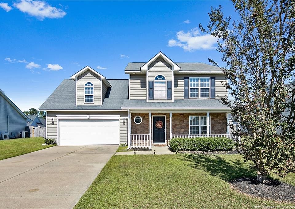 The living is easy in this impressive, generously proportioned contemporary residence. This beauty is located within a easy commute distance to Fort Bragg, schools and shopping. The floor plan encompasses four spacious bedrooms with plenty of room for study, sleep, and storage. This homes floor plan has something for everyone. The sleek and well appointed kitchen flows easily to the breakfast nook and dining room. The open floor plan and a beautiful fireplace welcome all who enter. The owners' bedroom, complete with walk-ins and ensuite, ensures privacy. Upstairs is a delight with an enormous bonus room, full bathroom, and a three spacious bedrooms. Move in ready, with its warm sense of community, this home provides all the elements for relaxing, comfortable and easy care living.