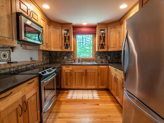 This 4 bedroom home has much to offer! Located on a beautiful, private lot, with a new kitchen, sun room off the deck, hot tub, central vacuum system, glass entry with radiant heat, 12 Anderson Renewal windows replaced with a 20 year warranty and more! Open, fully landscaped yard bordered by the brook. Just a short walk to cross country trails and easy access to the slopes via resort shuttle.