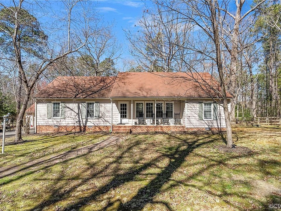 Rare, one level home with full front porch, charming open style plan, tucked away on almost an acre and a half, just minutes from the reservoir. Hardwood floors throughout, an abundance of natural light, fantastic great room with fireplace. Open kitchen design with eat-in area, pantry, and considerable cabinet space. Generously sized primary en suite with walk-in closet and bathroom. Two additional bedrooms offer plenty of space and a 4th bedroom/flex space. Spacious detached, 2 car garage with plenty of space for storage.