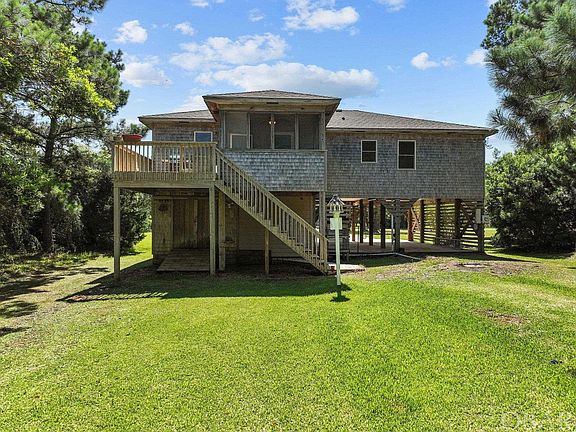 A new roof was just installed and this could be the home you have been waiting for! Cedar Court is situated in Frisco in a small subdivision with approximately 10 lots. There is a large storage shed on the ground level for all of your beach gear. The home offers 3 bedrooms and two bathrooms, an open living area with kitchen/dining which has hardwood floors and a vaulted ceiling. There is a screen porch and deck off the rear for those quiet mornings to catch a nice needed break. Currently there is a mechanical lift installed outside beside the deck for the seller. If desired, this lift could be sold in a separate bill of sale or properly removed at closing. The site is large at 20,000+/- square feet and the home sits back off the street. Sometimes the yard does hold water after heavy rains and storms. New roof!