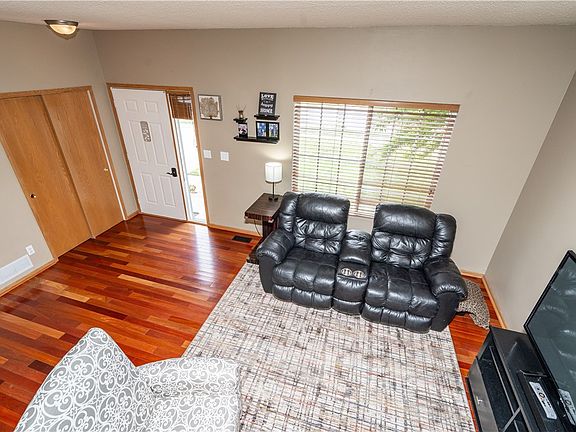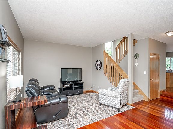 Welcome to this turn key ready home that highlights natural elements and modern comforts, located in the Johnston school district. This home sits on a larger sized lot adorned with more than 10 developed trees, including an apple tree in the front and mulberry in the back. Step inside and be greeted by the warmth of Brazilian cherry hardwood flooring that runs throughout the main level. The living area provides ample room for relaxation and entertainment. The kitchen features plenty of cabinet and counter space and a nice sized dining area. Upstairs you will find a spacious primary bedroom that provides comfort and is complete with a private bathroom and a sizable walk-in closet. There are also two additional bedrooms and a bathroom on the second floor. The finished basement offers additional living space including a 4th spacious bedroom, perfect for a home office, guest room, or whatever your needs may be. Step out onto your large double deck into the backyard, and spend your whole day outside enjoying what nature has to offer, complete with a privacy fence for added tranquility. Enjoy the added convenience of a spacious 2 car garage and 3 car driveway. Major updates include a new roof within the past 2 years, new A/C, furnace, and water heater installed within the past 3 years. Don't miss out on the many features this home has to offer!