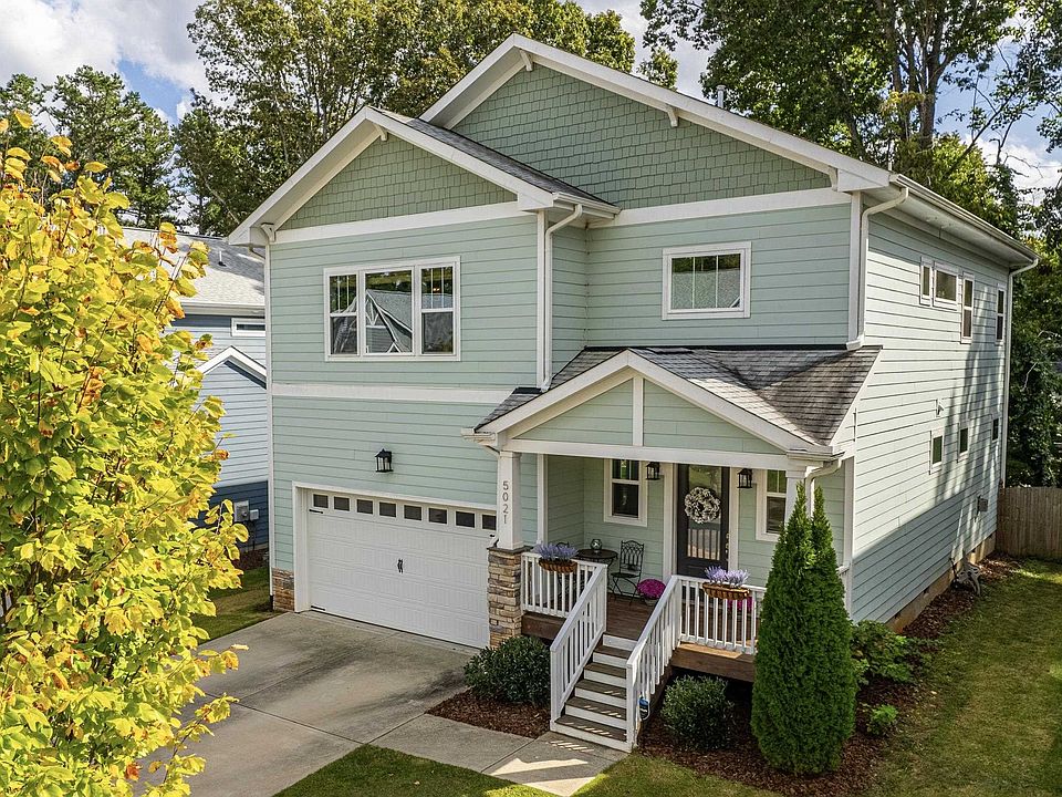 You won't believe it! So close to everything yet in a small community with trees & sidewalks. Easy access to 40, 440 and 1. Five minutes to NC State & Centennial Biomedical Campus, 10 minutes to upscale shopping at Fenton in Cary, 15 minutes to RTP (think new Apple HQ) & easy Uber to Downtown Raleigh. Lovely home, full of light, has wonderful designer touches and the perfect set-up to work from home. Quartz kitchen & baths, hardwoods in entire downstairs level. Nothing was missed in the details here with beautiful trim. 4th bedroom is spacious enough for a bonus room or maybe "executive-level" home office! Enjoy the trees from your backyard on the covered deck or have coffee on the front porch! No time like the present to be "home for the holidays!"