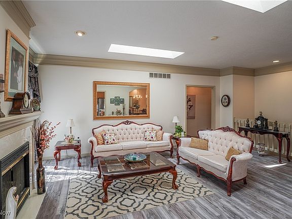 This ranch offers more than meets the eye, with over 2,300 sq. ft. of living space, including a walkout lower level ready for entertaining. The main level welcomes you with a living room featuring wide crown molding and a cozy gas fireplace. Step through the archway into a formal dining room with a tray ceiling, perfect for holidays and celebrations. The kitchen has room for casual meals, a serving counter, and a workstation, all with the convenience of hardwood floors and full appliances. The nearby laundry area makes daily chores easy, right off the hall leading to the attached 2-car garage. You'll find 3 bedrooms and 2 full baths on the main level, including the primary suite with a double sink vanity in its private bath. Downstairs, the lower level invites fun and relaxation with a media room, complete with theater chairs and a TV, plus a bar area with two sinks and an electric range, and even a negotiable pool table. Step outside to enjoy the patio with a gazebo that includes a ceiling fan and privacy screen, or unwind in the hot tub under the deck in your private backyard. Updates within the last 10 years include a new roof, A/C, hot water tank, and foyer skylight. Plus, this home is in a prime location within walking distance to Gervasi Vineyard, nearby walking paths, and Plain Local Schools. Don't wait, schedule your showing today!
