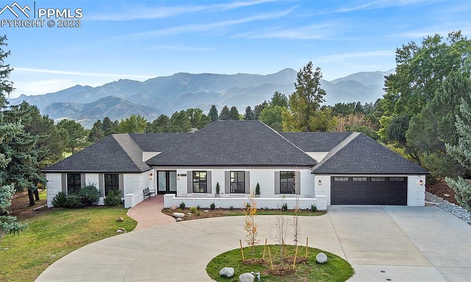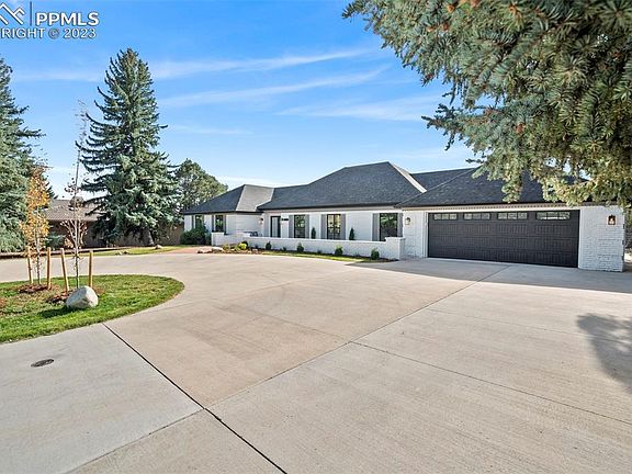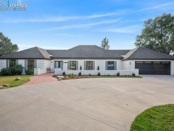 An absolutely stunning ranch home in Kissing Camels on a 1/2 acre lot! With a view of Pikes Peak and backing to the golf course, this coveted location is a rare opportunity. Enjoy main level living in this FULLY remodeled home. Remodeled by a local award-winning custom-home builder, this home was brought down to the studs and nothing has been overlooked. Brand new windows, roof, electrical, plumbing, mechanical, and custom selected designed finishes throughout. The moment you enter the home you can see through the large Great Room to a 15-foot glass door giving you spectacular views of the golf course as well as Pikes Peak. The gourmet kitchen completes the common areas and truly is the heart of the home. Equipped with a 48 inch range, custom built vent hood, large island with a prep sink and other details throughout. The primary bedroom has access to the outdoor space and its incredible views. The main level also includes two additional bedrooms, each with their own private bathroom, a study and powder room. Lower level offers a gym and storage area. The spacious patio, with a newly added vaulted patio cover and built-in BBQ, creates a great space for entertaining and enjoying beautiful Colorado days. Home amenities include engineered hardwood floors, central air, quartzite countertops, custom-built pantry, hail rated Class 4 roof, zero entry from front door and garage, and zero entry to the primary bath shower. 24-hour gated entry into Kissing Camels. Within easy walking distance to the Garden of the Gods Club and Resort and Kissing Camels Golf Club. Use of Garden of the Gods Club and Kissing Camels Club facilities requires a separate membership. Don't miss this hidden gem in a sought-after location offering main level living at its finest! This amazing home has been completely remodeled and is ready for a new owner to enjoy!