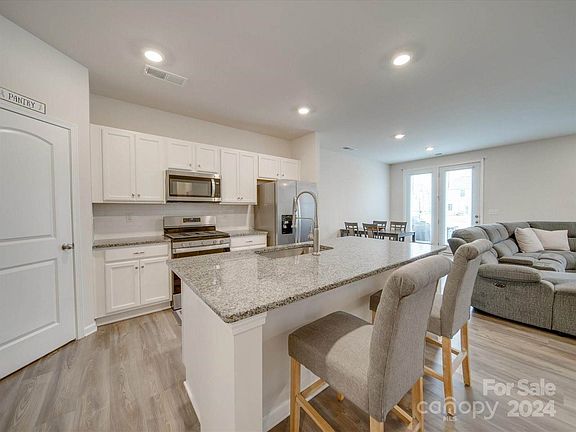 Welcome to this stunning home designed for both comfort and convenience! The main level boasts a spacious primary suite and a guest suite with a full bath. Upstairs, you'll find three additional bedrooms, a versatile bonus room, and an oversized storage area. The open-concept main living area features durable vinyl plank flooring, seamlessly connecting the great room, dining area, and a chef’s kitchen. The kitchen is a standout with its gas range, stainless steel appliances, granite countertops, tile backsplash, and a large island with bar seating. A walk-in pantry offers ample storage for all your needs. Step outside to a serene back patio overlooking a fenced yard with the added bonus of a common area behind the lot, providing extra privacy. This home is situated in a neighborhood that offers fantastic amenities, including a brand-new pool and playground, perfect for relaxation and recreation. Don't miss the opportunity to make this beautiful home yours!