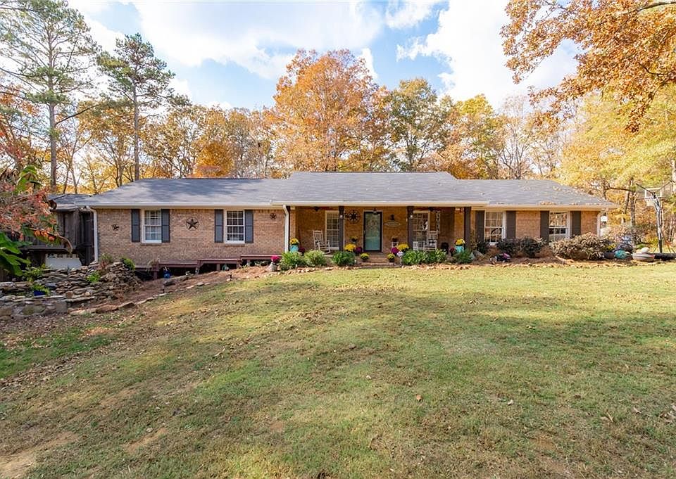 Come home to this beautiful, brick ranch home on a full basement! Sitting on 5 peaceful, private acres with approx. 235 ft of frontage to Dog River. Relax on the rocking-chair front porch or enjoy the serene river area that borders the backyard. 3 bdrm, 2 ba on the main level with an additional finished room w/closet in the full basement, could be a 4th bedroom. Freshly painted interior with neutral colors, this well-built home includes numerous updates throughout. Kitchen includes new tile floor, SS appliances, & refinished cabinets. New roof added in March 2022 and the well pump was replaced in August 2022. County water is available if desired. This home also includes a large, multi-use, workshop/storage addition. The 42’ X 30’ pole barn is great for additional storage. Wooded area includes atv/mountain bike trails for recreational enthusiasts. Enjoy the country life with the convenience of shopping and access to I-20 in just 10 minutes. Must see to appreciate!
