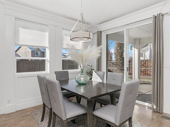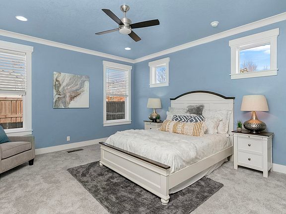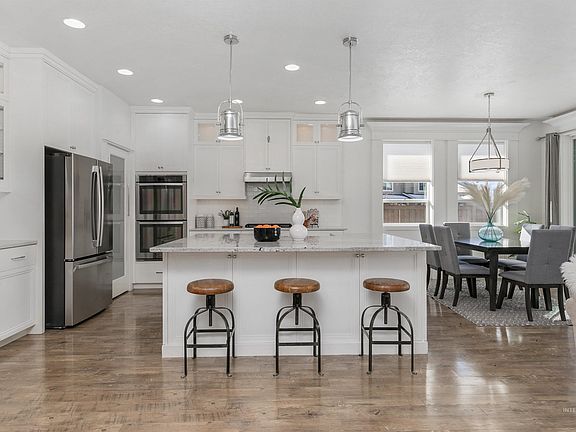 Contemporary farm-style home in a prime location. The two-story residence features granite and quartz countertops, top-tier laminate flooring, detailed trim and loads of storage throughout. The bright and dreamy kitchen includes stainless steel appliances, a gas-burning range, a deep cast iron sink, polished chrome finishes, and a sizeable walk-in pantry. Natural light fills the main living area centered by a brick inlay high-efficiency gas fireplace. The master suite features a serene color scheme with a large walk-in closet, MAAX deep soaking tub, and dual vanity space. On the second level, the double-door entry gives way to a spacious bonus room. and an additional bedroom with full bath. The backyard provides a private covered patio with out door fan and additional space is offered with an attached RV garage. Paramount community offers multiple common areas, multiple pools, parks, pathways, & clubhouse