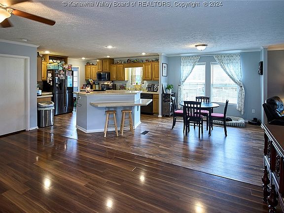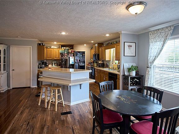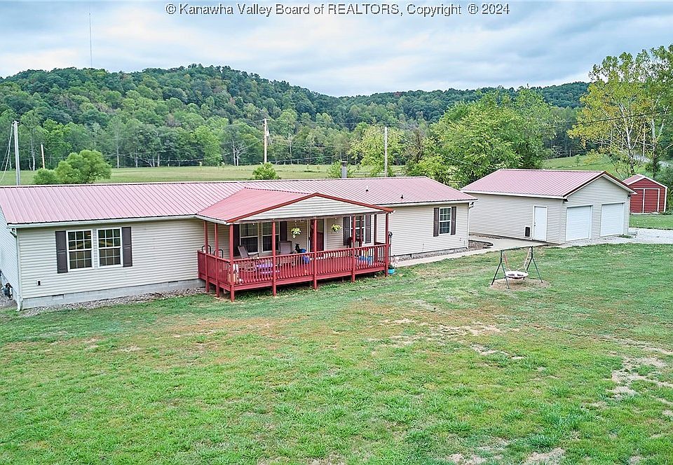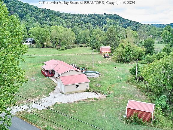 Peaceful country setting on 4.96 flat acres only minutes Cross Lanes or Poca. This one-level home features an open living/kitchen area with a large island and a beautiful stone fireplace. Also offers 4 bedrooms and 2 full baths. The primary includes a walk-in closet and a large bathroom with a garden tub. Step outside to a large, private composite deck around an above-ground pool. Perfect for relaxing and entertaining. Also, a covered front porch to enjoy your morning coffee. 24x24 detached garage with plenty of space for vehicles, workshop, or storage. The garage has separate electricity with a plug-in for the RV. The property features a 3-stall barn with power and water, a storage building, a newer metal roof, along with a generator.