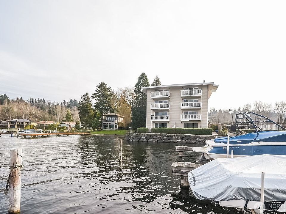 Beautiful 2 bed, 1.75 bath, 923 SF lake-view condo in a gated community! Updated throughout w/quartz counters, sleek cabinets, SS appliances & laminate floors. Bright primary suite with stylish bath with walk-in shower & marble vanity. Spacious 2nd bedroom, full bath with marble vanity and tub. Open living space with lots of natural light and seamless access to a spacious balcony overlooking the water perfect for coffee or relaxing evenings. Plenty of storage with coat closet and in-building laundry. Resort-style community amenities include: secured lobby entry, pool, private dock, sauna & Eastrail access. Minutes to parks, shopping, dining and next to Seahawks VMAC. Easy freeway access for quick commute. A rare chance to rent a move-in ready lake-view condo in prime location! W|S|G Included.