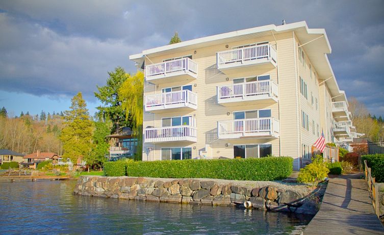 Enjoy affordable Lake Washington waterfront living in this southwest facing 2nd floor 2 bedroom 2 bath Misty Cove unit. This is a gated/secured property, and the unit has a covered assigned parking space (C4) plus a 2nd parking permit as well as in-unit washer and dryer. Relax at the swimming pool or soak up the sun and the breeze from the dock! The complex also offers storage lockers, a sauna, and laundry facilities. Managed by a well run Homeowner's Association. HOA dues cover cable TV, common area maintenance, earthquake insurance, garbage, recycling, water and sewer. Prime location right next to the Seahawk's VMAC facility, with easy access to 405 and I-90, an excellent walking/biking trail, Coulon Park, and The Landing. This 2nd floor unit is adjacent to the lobby/elevator on the lake side of the building above the foot traffic and away from the road, entry gate and main parking area. This location provides a quiet and private deck with an unobstructed southwest view of the lake! ____________________________________________ Furnishings in photos not current, not included. Information may change over time; seller does not warrant accuracy, reliability, or timeliness of information, and shall not be liable for any losses caused by reliance on the accuracy, reliability, or timeliness of such information.